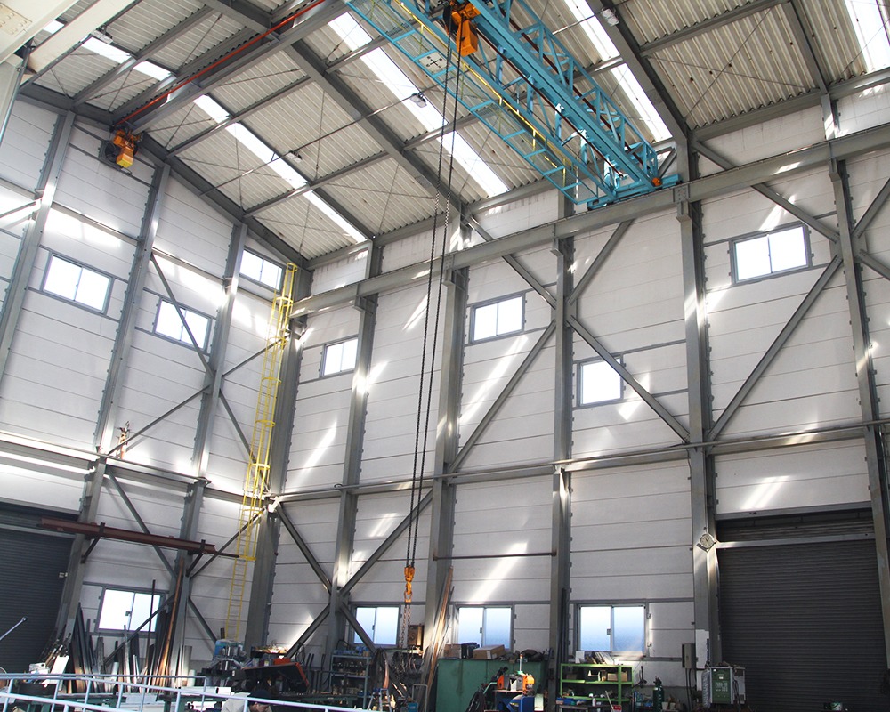 27m×14.5mで揚程13m・15m、走行クレーン2.5t×3基